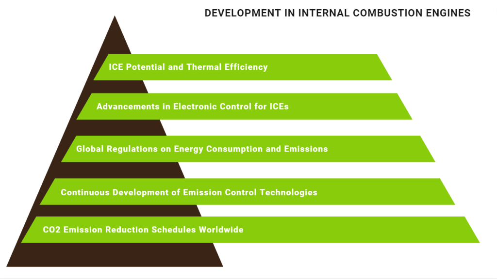 - From the perspective of ICE technologies, ICEs still have significant potential for improvement in terms of controlling CO2 and pollutant emissions.