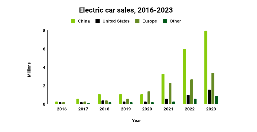 - Q1 2023 started slow but quickly recovered, with over 1.3 million electric cars sold.