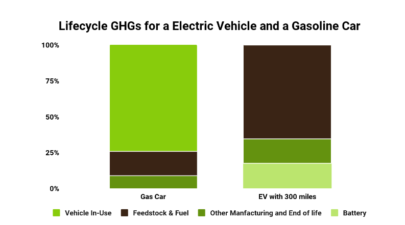The greenhouse gas emissions (GHG) associated with vehicles using fossil fuels are higher than that of an electric vehicle, even during its manufacturing. Generally, carbon pollution is produced more while manufacturing a typical electric vehicle than making a gasoline car. Although greenhouse gas emissions from EV production and disposal are greater, overall greenhouse gas emissions from EVs are still lower than those from gasoline-powered vehicles.