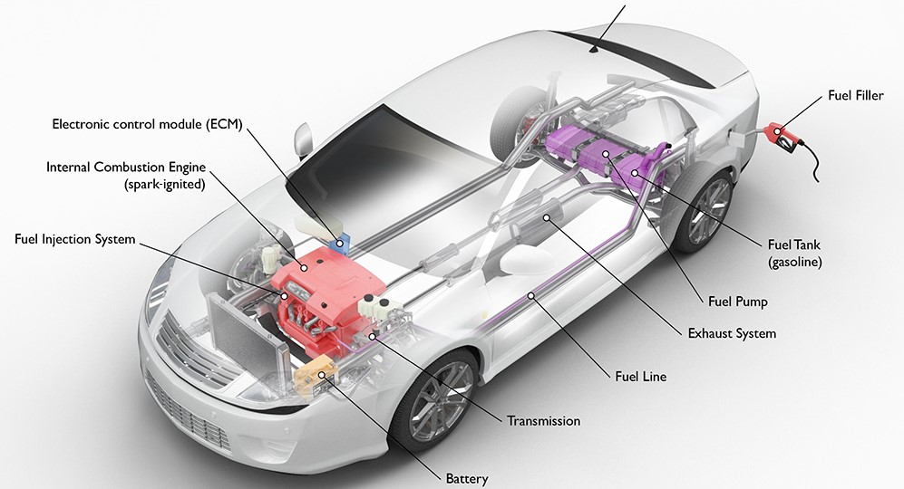 ICEV is a heat engine where fuels are ignited with an oxidizer (usually air) in a combustion chamber. Then, the chemical energy is transformed into heat energy and kinetic energy to propel a vehicle. Conventional ICEV is dependent primarily on petroleum-based fossils like gasoline, diesel oil, liquefied petroleum gas (LPG), and compressed natural gas (CNG) (Balat and Balat, 2009). It has no Electric Motor (EM) to support the fuel economy.