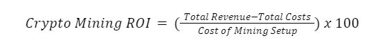 Imagine you have invested in a crypto mining setup and want to calculate your return on investment (ROI). Here are your details: