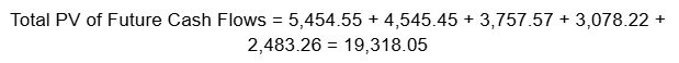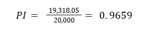 Now that we have the Present Value of Future Cash Flows ($19,318.05) and the Initial Investment ($20,000), we can calculate the PI: