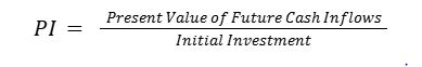 The formula for calculating the Profitability Index is: