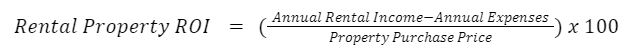 ROI, or Return on Investment, measures the profitability of a rental property. It considers factors like annual return, monthly income, and property appreciation to determine the financial gain relative to the investment cost.