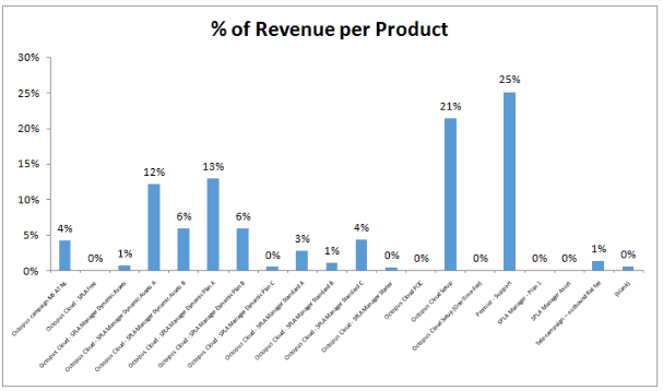 Oak Business Consultant carefully analyzes the products/ services sales. So we come to know that 92% of revenue comes from only 8 products/ services out of 23 products services, it means they should focus on their top-line products and eliminate the low contributing product from their portfolio.