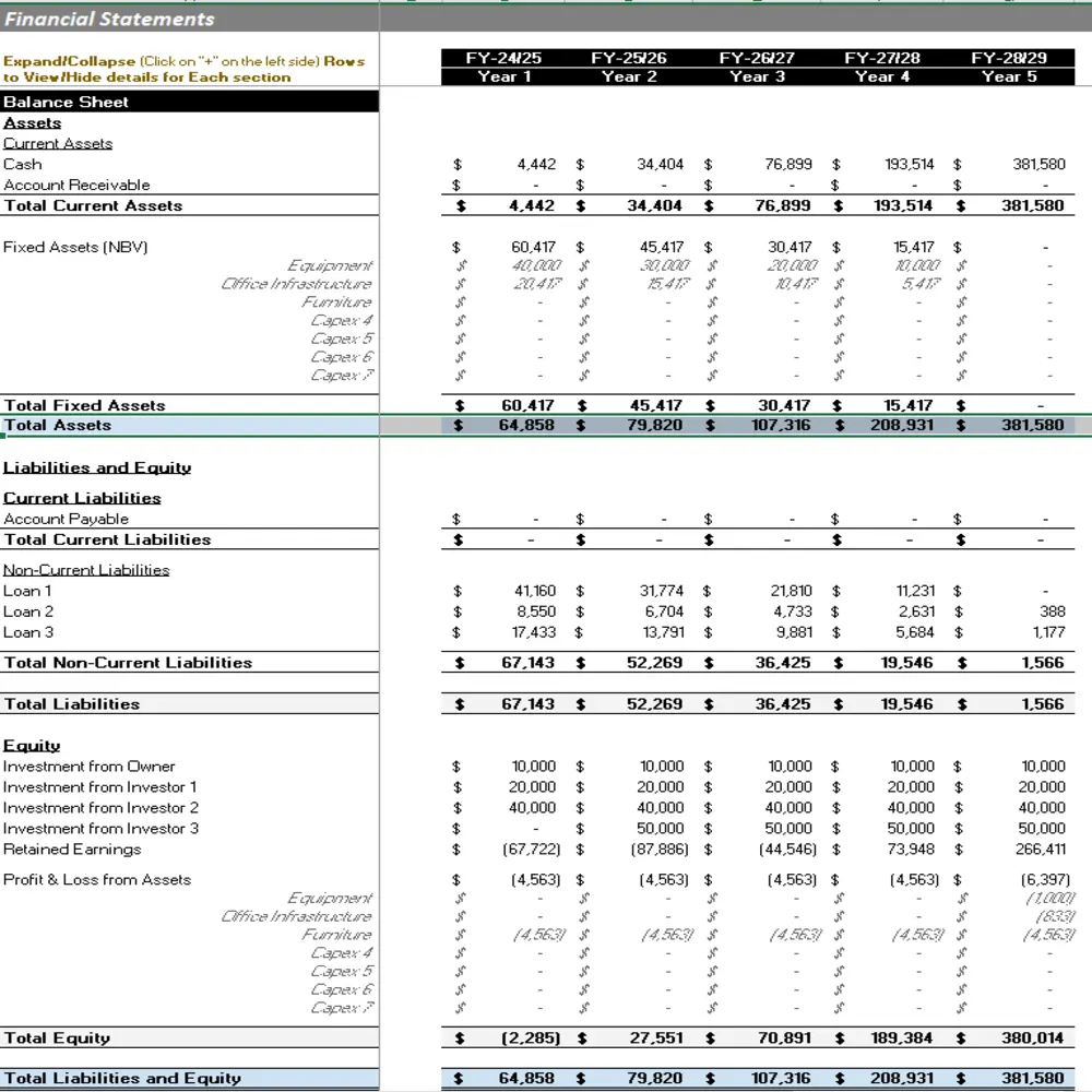 This balance sheet enables you to analyze your position of current assets, fixed assets, liabilities, and equity. This also allows you to monitor your accounts receivable, accounts payable, accrued expenses, etc. Therefore, this specific, financial model gives you the perfect space to analyze your key financial balance accounts.