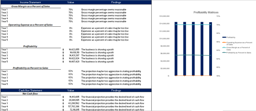 This Diagnostic sheet is a new inclusion to our financial model. This automatically explains the condition of the business. For example, if your company’s profit is 30% of the total sales the sheet will include favorable comments (As mentioned in the above picture). These comments are based on the financial data present in the income statement, balance sheet, and Cash flow. The Diagnostic Sheet is very helpful to give the company’s insights in just one line.