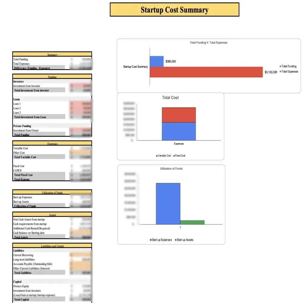 Provide a breakdown of startup expenses, including marketing, product development, and administrative costs. Comprehensive financial planning helps in budgeting and identifying areas for cost control and optimization.