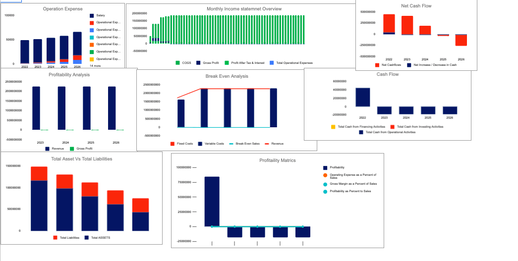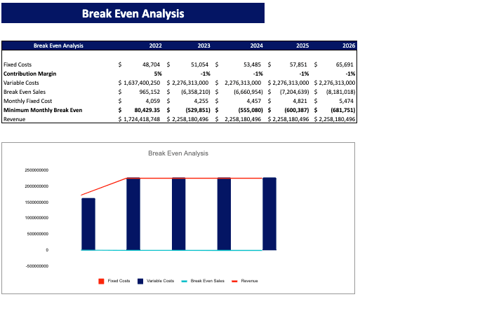 We have included a Break-even analysis in our Financial Model to help the user determine sales. The Break-Even Analysis refers to your total sales contribution being fixed cost at zero profit and loss. This Technique is primarily based on marginal costing, which behaves differently at various levels of output activity. Therefore, the break-even analysis will help you know the profits generated at the different sales levels at a glance.