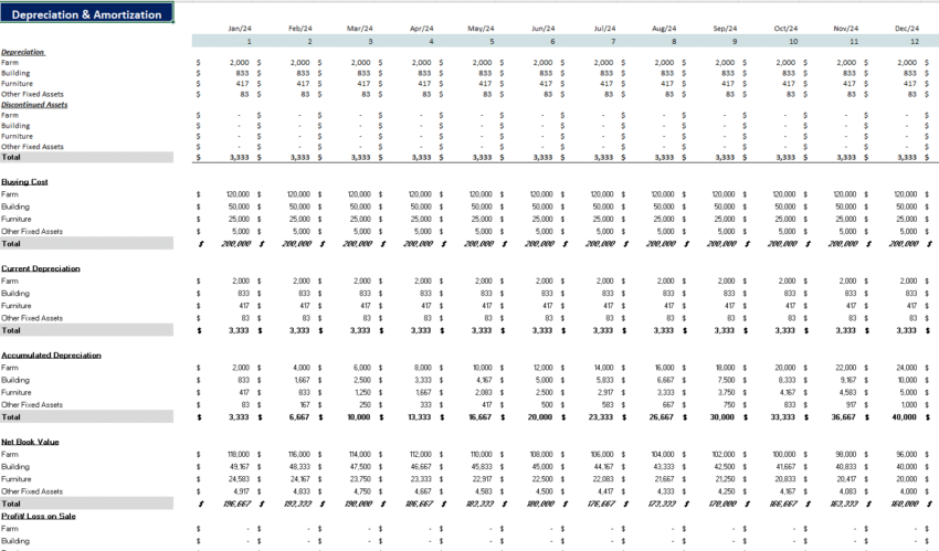 Yes, the model includes a loan schedule and detailed financial statements, which provide a clear picture of your farm’s financial health. These documents can be used to present your business plan to banks or investors.