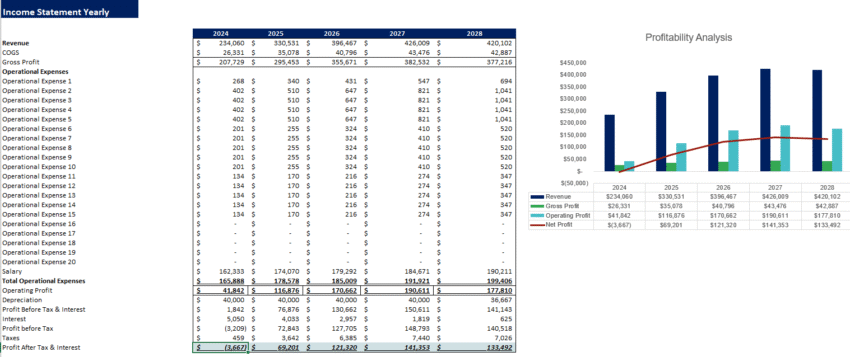 It’s well-structured and covers all the necessary details like cost projections, cash flow, and profitability. Very useful tool.