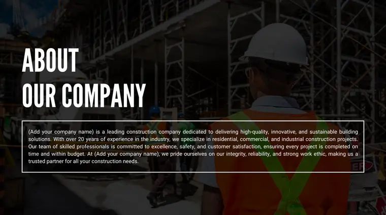 Company Summary of Construction Company Pitch Deck