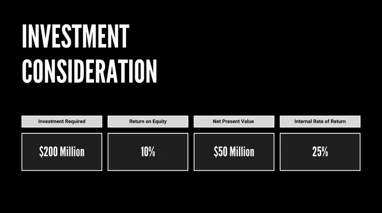 With this pitch deck slide, you must be strategic in your approach. This slide has room for flexibility. It will tell you the approximate amount or show you a summary of your investments and profitability.