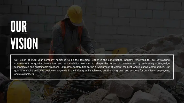 Each section of the Construction Company pitch deck includes several layouts. Each Layout is designed differently. Choose the slide layout that best explains your business idea.