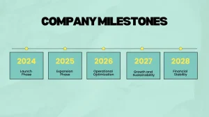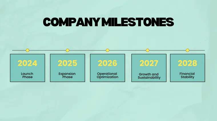 Outline the milestones that serve as markers of your business’s progress and affirm its potential for success. Investors are keen to track your journey to success.
