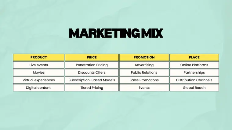 The magic is in the mix. Detail the elements of your marketing mix, focusing on innovative campaigns that captivate and engage. Showcase how these elements harmonize to craft a compelling narrative.