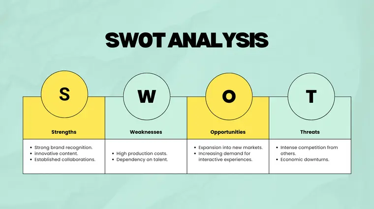Undertake a rigorous SWOT analysis to assess your strengths, vulnerabilities, promising opportunities, and looming threats. It’s your strategic compass in a sea of competition.