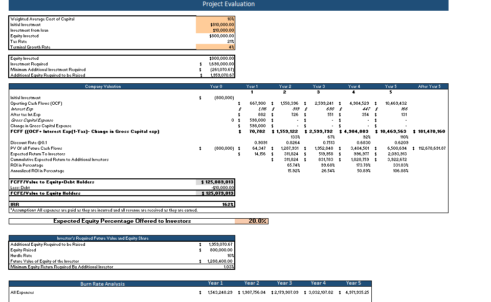 Since the table calculates Return on Investment, Investor’s Future Equity Share, and Cash Burn Rate Analysis, analyzing the company’s performance becomes easy to capture potential investors.