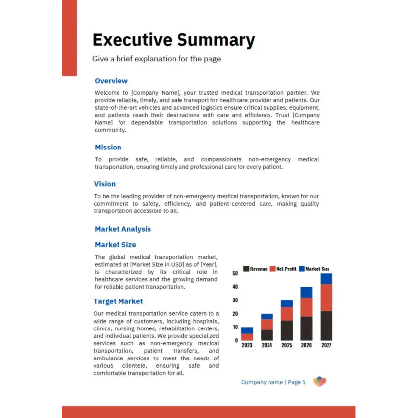 Transform Your Medical Transportation Vision into Reality with Our Comprehensive Business Plan Template