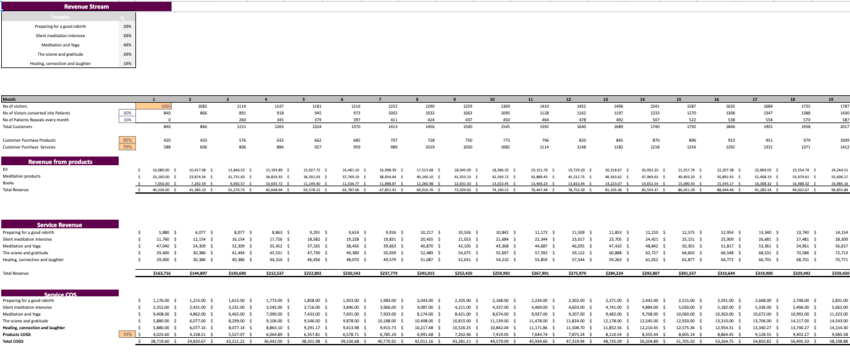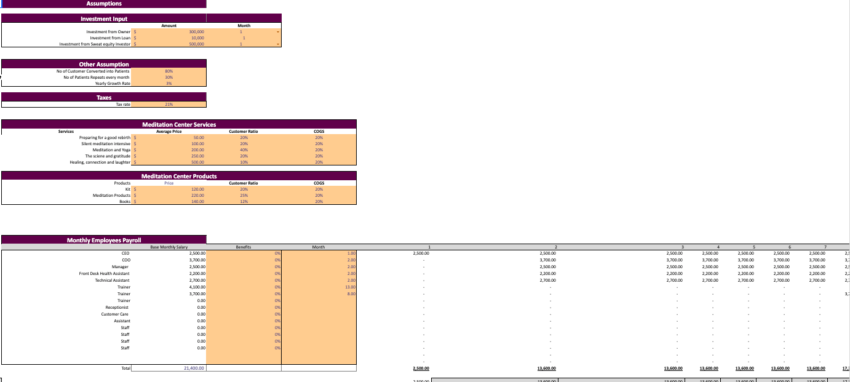 Based on Financial Principles – We researched a Meditation Center business model in-depth. So this financial model has logically correct financial and economic principles and assumptions.