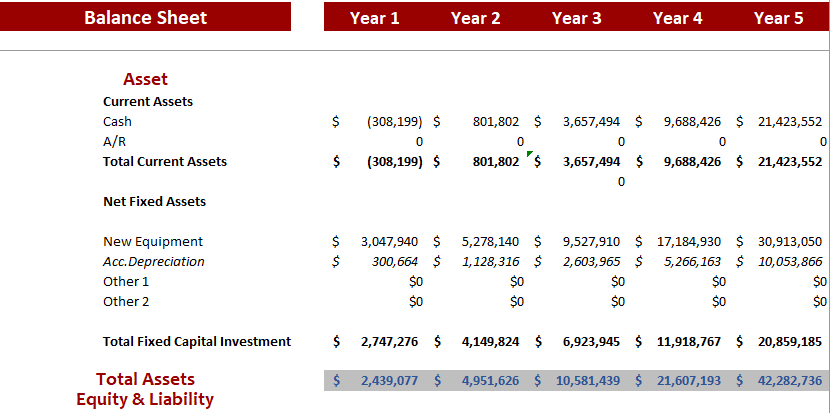 This balance sheet enables you to analyze your position of current assets, fixed assets, liabilities, and equity. This also allows you to monitor your accounts receivable, accounts payable, accrued expenses, etc. Therefore this specific financial model gives you the perfect space to analyze your key financial balance accounts.