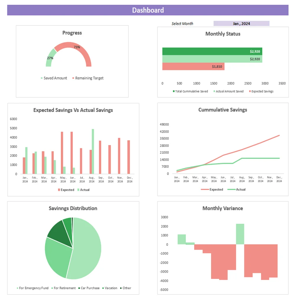 - Motivation: Visual charts and graphs, like those in a Savings Tracker Dashboard, motivate you to stay on track and reach your money goal trackers faster.