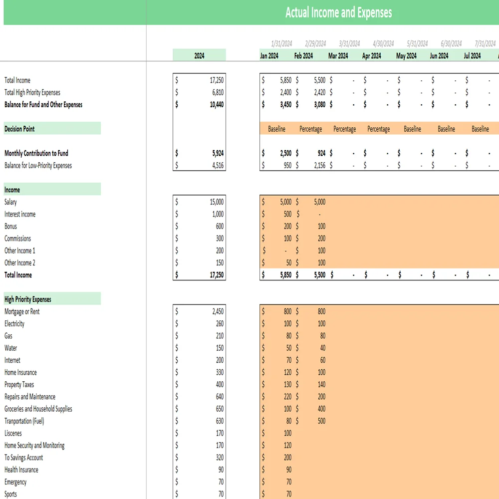 - Income and Expense Categories: We understand the varied nature of fund expenses. Hence, they are segregated into high-priority (like rent, utilities, and groceries) and low-priority categories. The latter encapsulates expenses that are flexible or can be postponed.