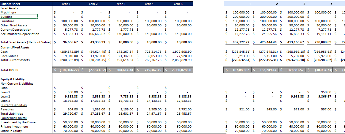 This financial model template contains inputs that, when changed, impact the calculations and, therefore, the changes are applied to all relevant sheets. This financial model always has built-in flexibility to display different outcomes or final calculations based on this sheet’s changes. This is helps in making future projections.