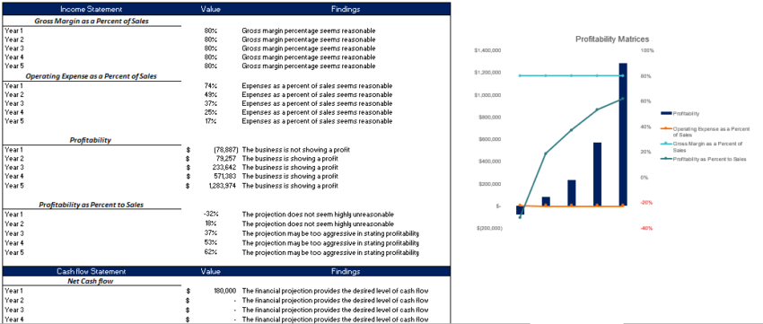 This Diagnostic sheet is a new inclusion to our financial model. This automatically explains the condition of the business. For example, if your company’s profit is 30% of the total sales the sheet will include favorable comments (As mentioned in the above picture). These comments are based on the financial data present in the income statement, balance sheet, and Cash flow. The Diagnostic Sheet is very helpful to give the company’s insights in just one line.