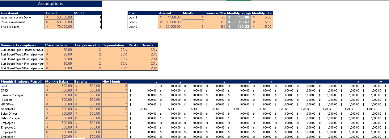 Based on Financial Principles – We did in-depth research on a Surf Board Rental Excel business model to create this financial model with logically correct financial and economic principles and assumptions.