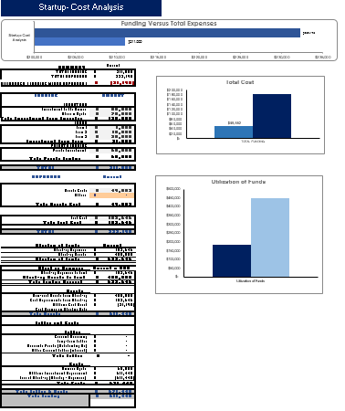 A start-up summary tab includes the total cost incurred at the start of business and capital expenditure, how much cash injected by the company so far, and based on the number of months the amount of investment required is calculated.